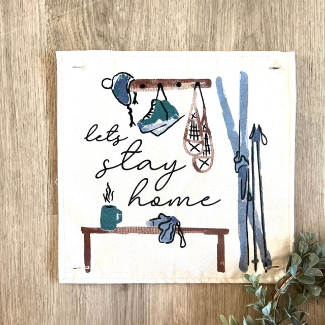 GIFT SET for your MOM: comes with 2 SQUARE PILLOWS AND these 2 panels: LET'S STAY HOME and LET'S STAY IN winter
