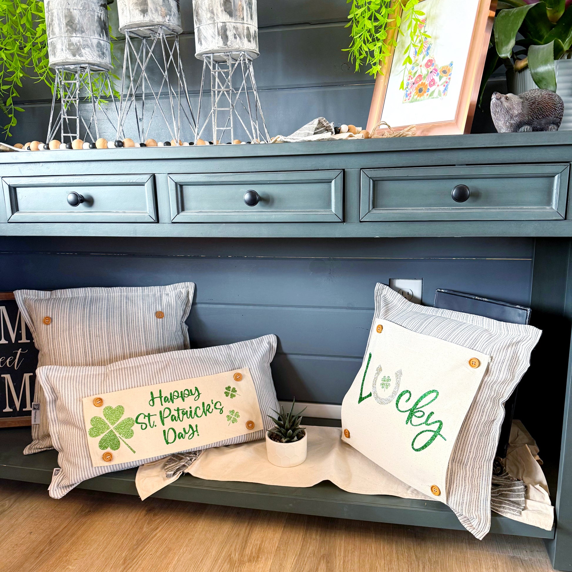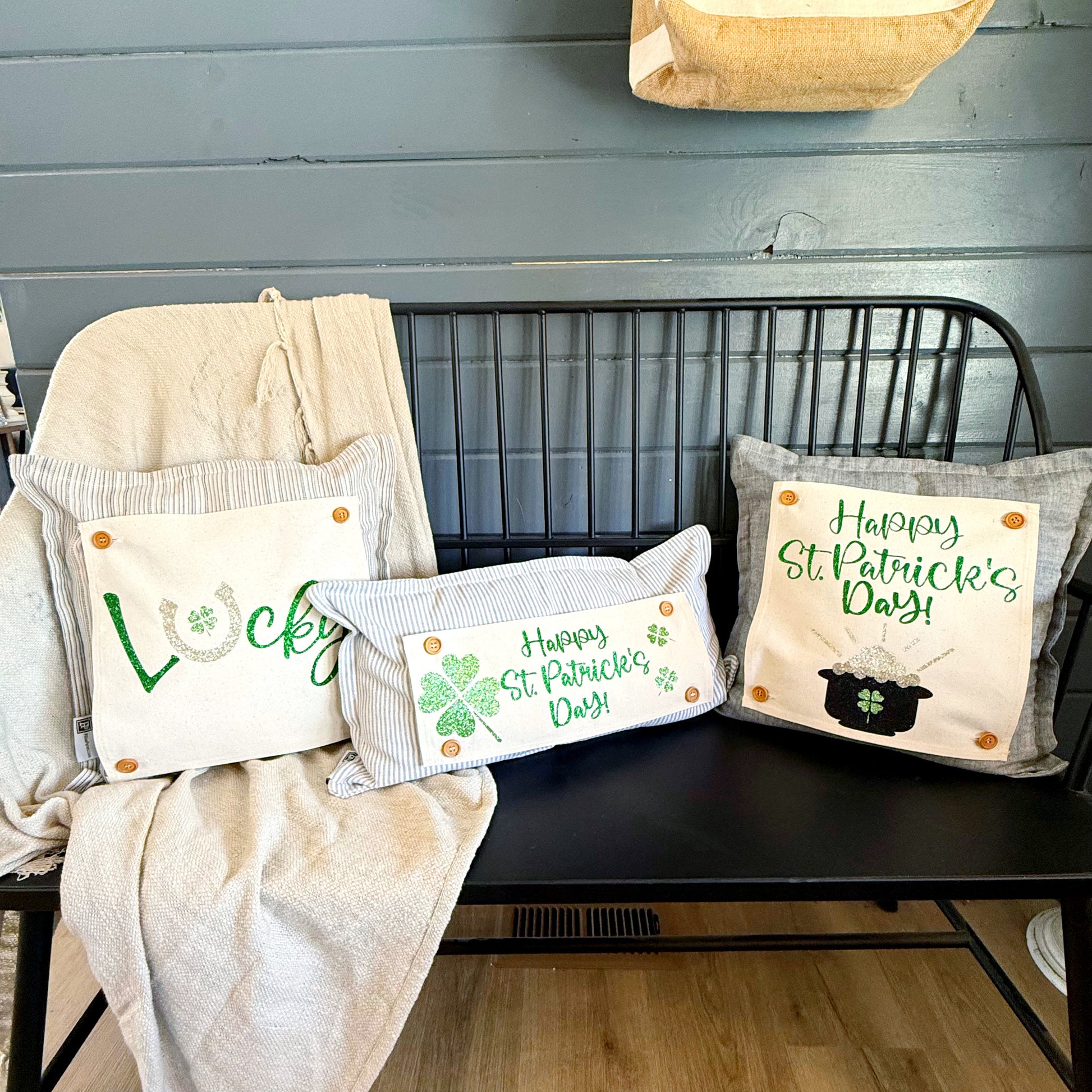 Glitter Holiday Panel: Irish Kisses & Shamrock Wishes; Spring St. Saint Patricks Day, HAPPY ST. PATRICK'S DAY CLOVERS