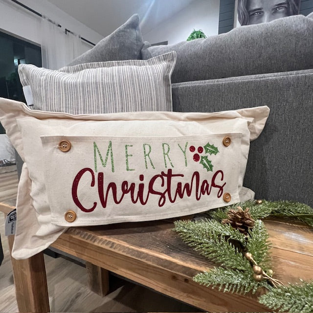 Glitter Holiday Panel: Winter Mistletoe MERRY CHRISTMAS HOLLY BERRY