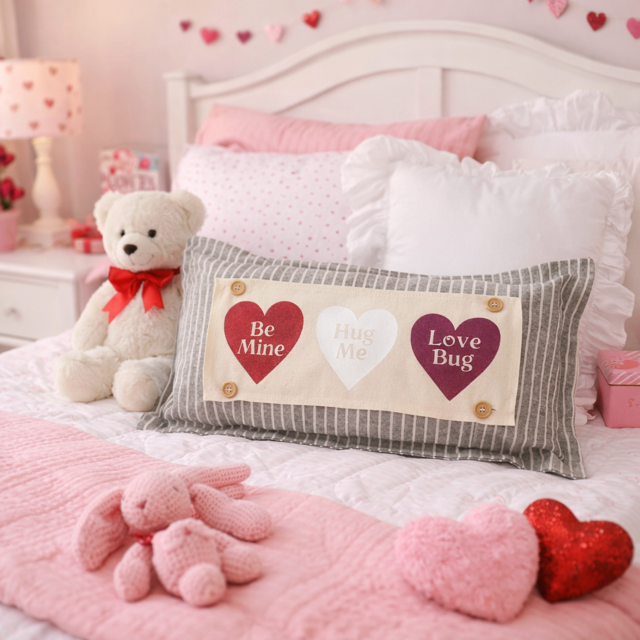 GLITTER PANEL ONLY: RECTANGLE Glitter Holiday Panel throw pillow: Winter, Valentines Cherry Pink, Love, Spouse, Partner; GLITTER CONVERSATION HEARTS