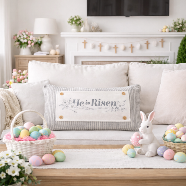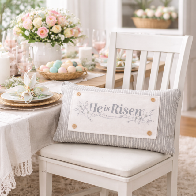 PANEL ONLY: RECTANGLE Spring, Farmhouse, Christ, Christian, Religion, Tomb, Lillies, Thorns, Atonement, Peace, Joy, Hope, Love; HE IS RISEN