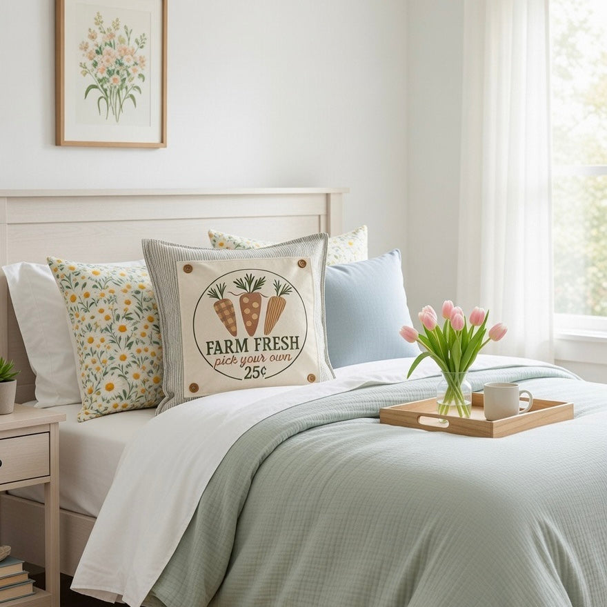 PANEL ONLY: SQUARE Spring, Summer, Harvest Veggies, Bunny Food, Garden; FARM FRESH CARROTS