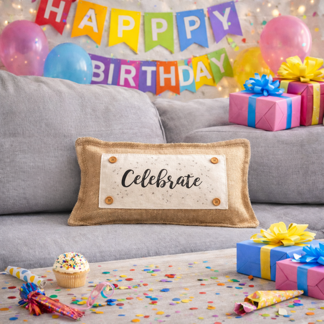 START HERE! This is our interchangeable pillow you NEVER put away!  Grab our cute charcoal stripes, burlap or gray stripes pillow and build your own collection of panels that store the back pocket! (Panels not included in this pillow)