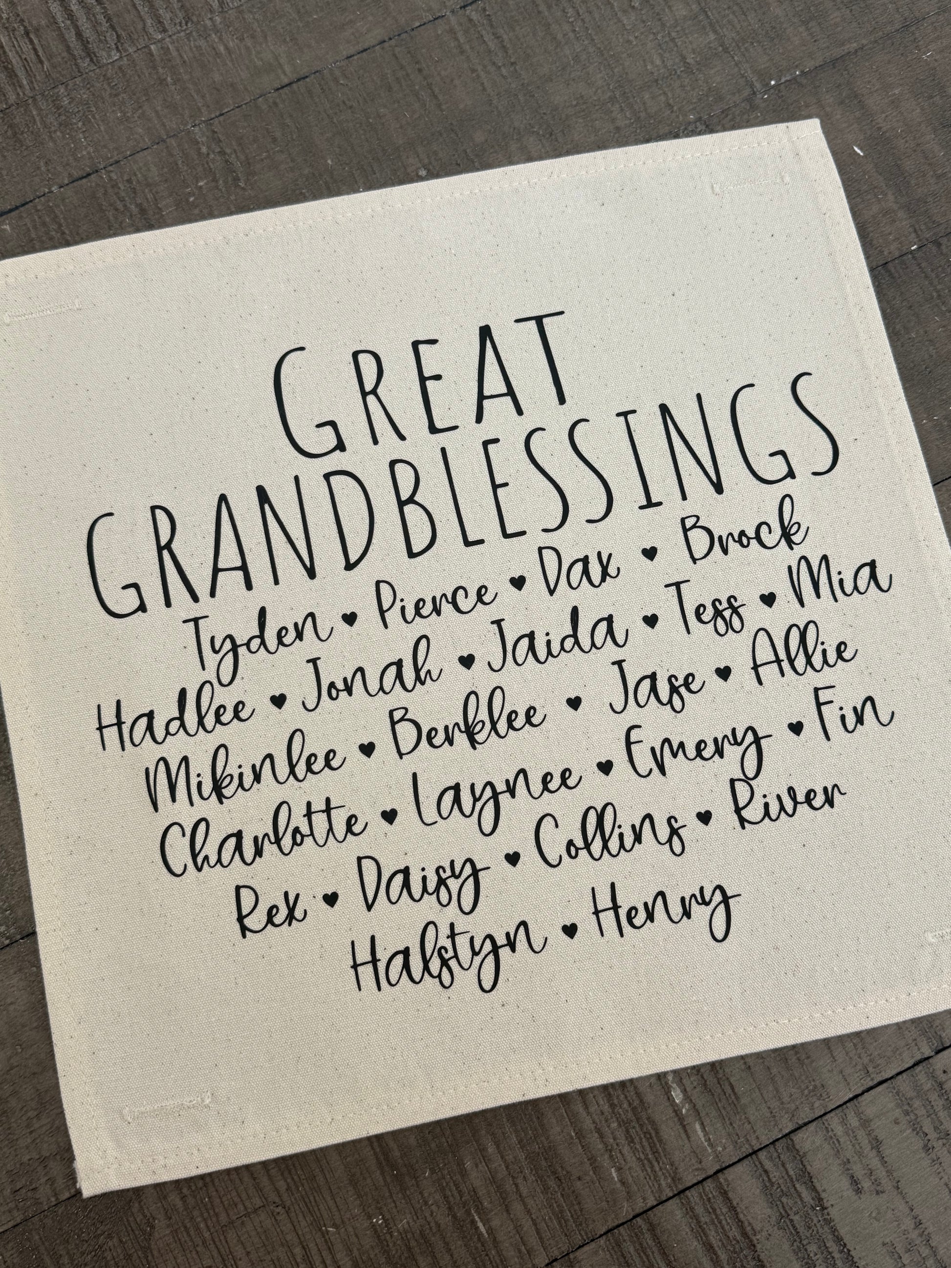 SQUARE Custom Memory Panel: GrandBlessings Family Name Monogram Grandkids SQUARE CUSTOM PANEL