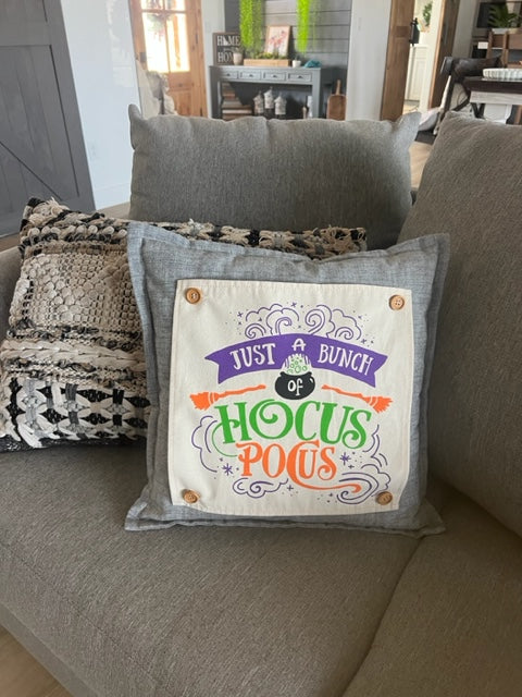 This is for the SQUARE pillow. HOCUS POCUS and all the witchy things! We loooove to have big Halloween parties here at the haunted farmhouse. Be on watch on our Instagram page @PillowPanels for DIY witches brew and making our witch costumes on a budget too!