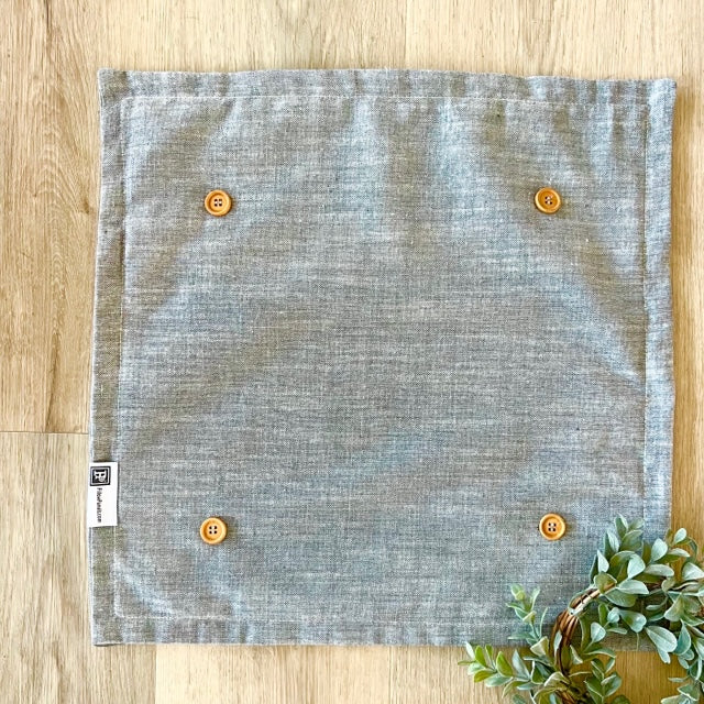 Unique gift for birthdays, weddings, graduates, BFFs, any holiday or event to celebrate!   This space-saving burlap pillow never has to leave its spot!  The wood-grained buttons on the front attach the panels as the seasons change!