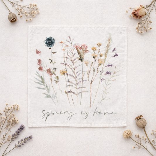 PANEL ONLY: SQUARE Pastel Water Color Floral Herb Garden Bouquet; Spring is Here Dry PRESSED FLOWERS