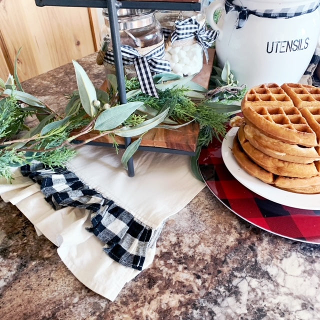 GIFT GUIDE: FOR THOSE THAT COORDINATE THE PARTY! GIFT PARTY PACKAGE BUNDLE: Holiday Pillow Cover Panel Winter: Runner Glitter Panel Combo LET'S CELEBRATE, HAPPY NEW YEAR + BUFFALO CHECK RUNNER